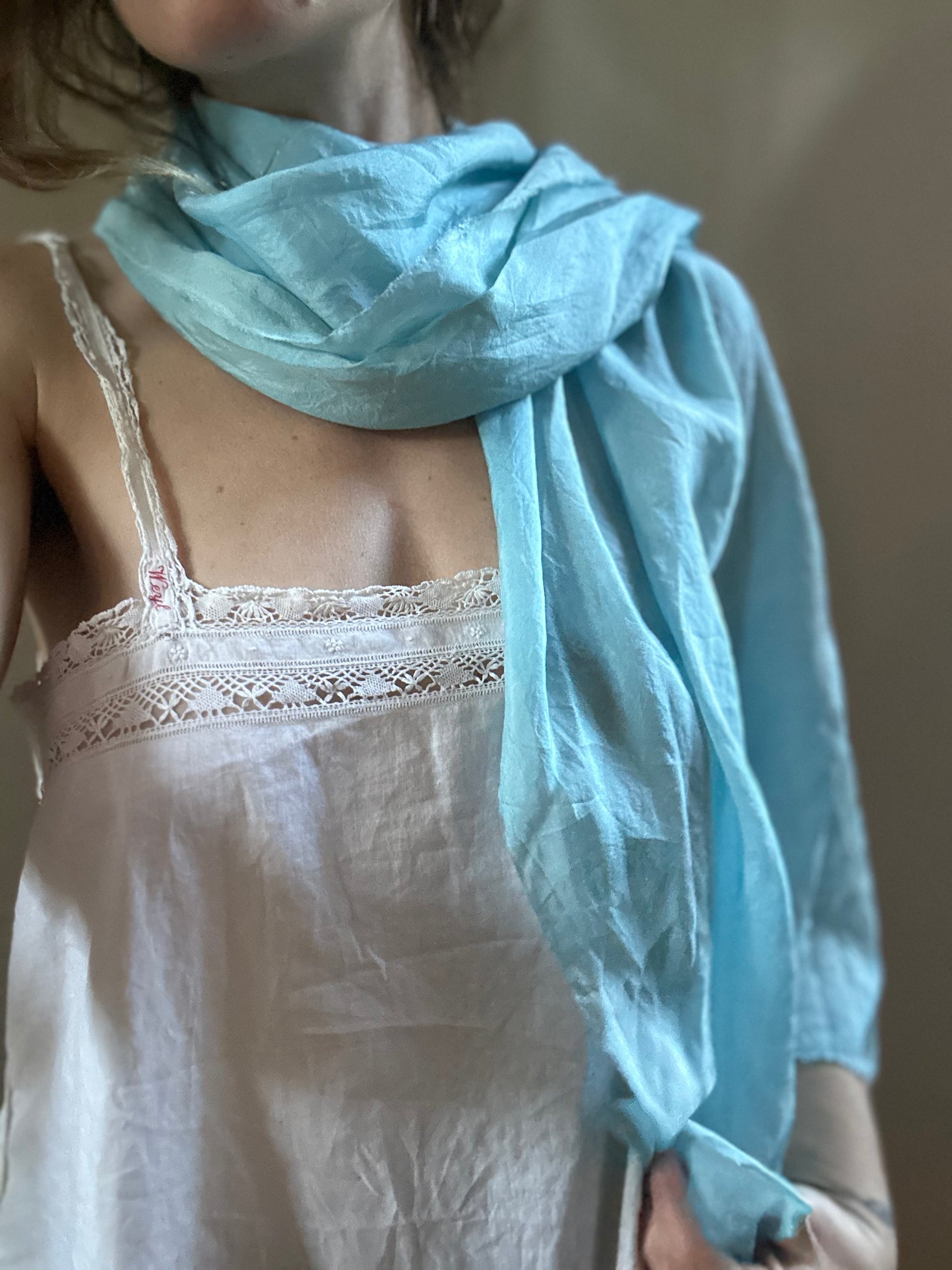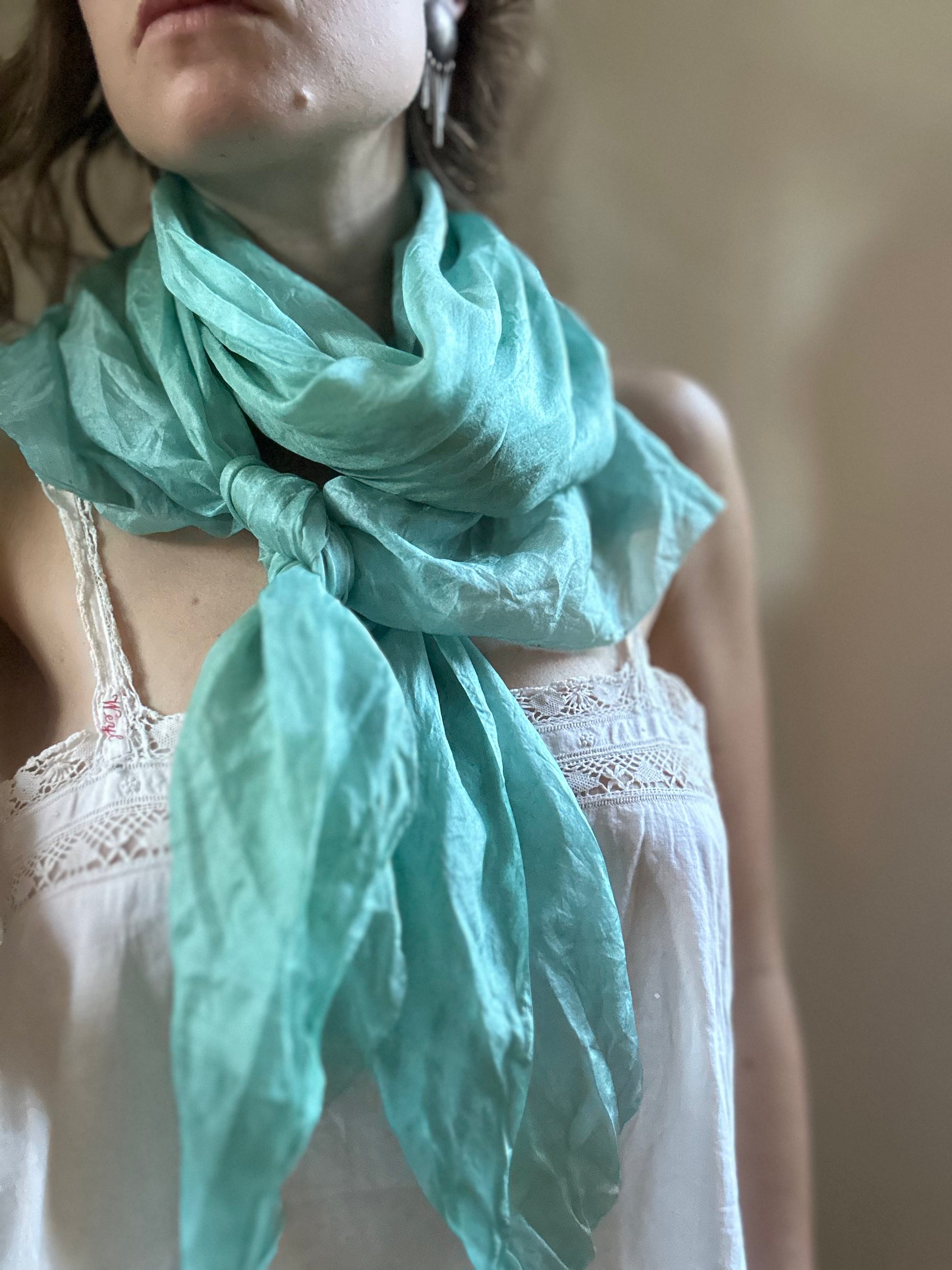fresh indigo dyed silk, indigo can paint multiple shades of blue- from teal to sky blue.
